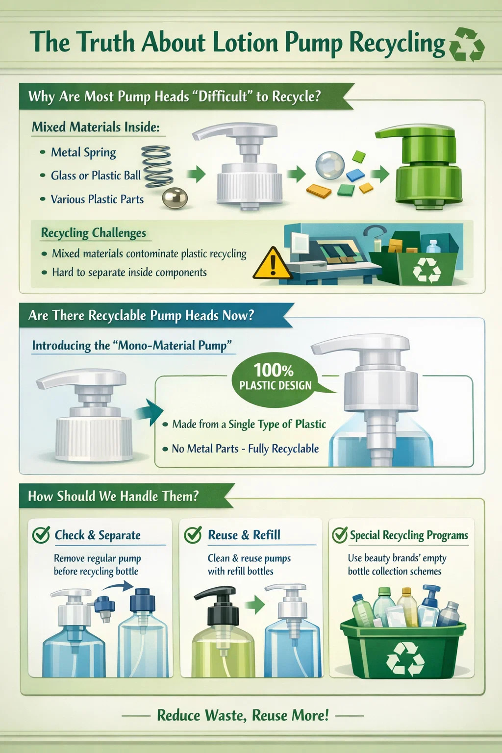Câu hỏi liệu máy bơm kem dưỡng da có thể tái chế được và liệu chúng ta có nên tái chế chúng hay không thực sự là một chủ đề khá thú vị.